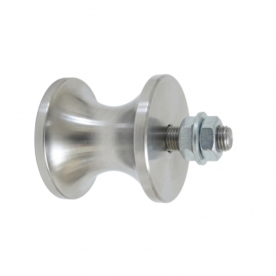 Seitliche Führungsrollen werden von uns sowohl in Stahl-, als auch in Kunststoffausführung angeboten. In den meisten Fällen haben Sie nur auf einer Seite einen Achsstummel (standardmäßig mit Außengewinde AG). Sie werden aber auch mit beidseitigem Achsende eingesetzt. Bei der Standardausführung (Ø63,5 - 100 mm - AG M16) der seitlichen Führungsrollen mit einseitiger Achse, wird die andere Seite mit einem Deckel verschlossen.